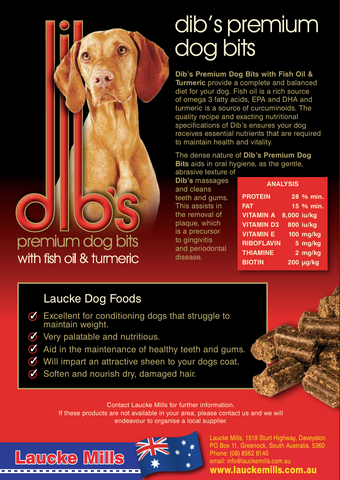 Dib’s Premium Dog Bits with Fish Oil & Turmeric provide a complete and balanced diet for your dog.