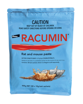 Racumin is a multi-feed rodenticide available in paste and block formulations.Racumin Paste combines vegetable fats and carbohydrates in a way that is exceptionally attractive to rats and mice. Highly palatable Racumin Paste can be used indoors and outdoors in bait stations.Because Racumin is a multi-feed rodenticide, pets and wildlife are less at risk of secondary poisoning. The unique palatability of the soft blocks makes them fatally attractive to both rats and mice. Using the multi feed approach Racumin will kill in a similar timeframe as a single feed bait (3-8 days) without the risk of bait shyness.