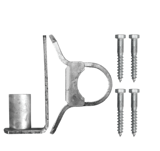 SCREW-ON TIMBER POST HINGE SET TO SUIT ROUND POST