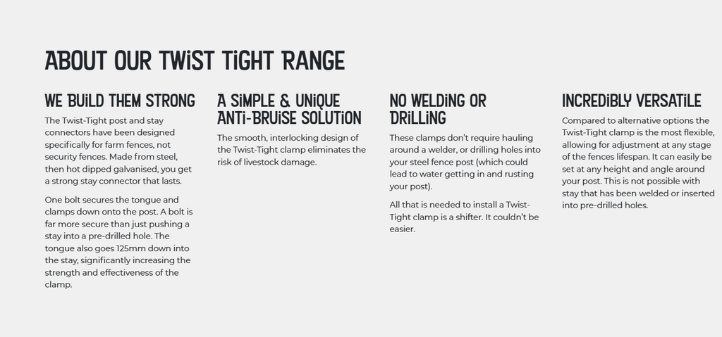 Looking for a strong and long-lasting stay connector? Our heavy-duty hot-dipped galvanised Twist-Tight post and stay connectors will keep your fences standing and secure.