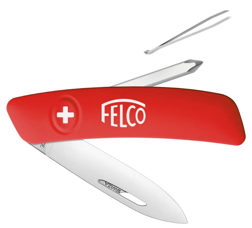 Stylish, safe and practical in equal measure, the ergonomic FELCO 502 pocket knife comprises a robust stainless steel blade, a No. 1 Phillips head screwdriver, tweezers, and a safe blade lock system. It has an easy blade-opening slot device that both right and left-handers will immediately claim as their own. Maintenance is simple following a few easy steps and even easier considering it is dishwasher safe. An essential go anywhere accessory for cutting in work or times of leisure. The innovative design and curved shape of FELCO knives give users superior ergonomic form for cutting especially when combined with the comfort of the “soft-touch” touch handle that enhance the grip across a multitude of tasks. Safety with FELCO products is essential and is present in the blade lock system that locks the 75mm blade in the open position and closes it by pressing the cross on the handle. A No. 1 Phillips head screwdriver and tweezers add additional functionality to the FELCO 502 knife.