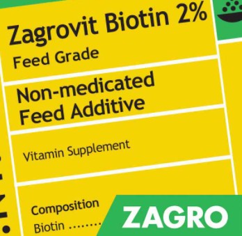 Zagrovit Biotin 2% is a free flowing Biotin powder for animal premix and feed use.